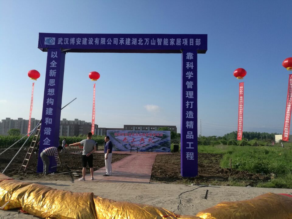 2016年6月18日上午9點(diǎn),由武漢博安建設(shè)工程有限公司承建的黃梅小池濱江新區(qū),在中部創(chuàng)新科技城-湖北萬山智能家居項(xiàng)目工地舉行盛大的開工典禮。湖北萬山智能家居屬湖北省十二五規(guī)劃的重點(diǎn)項(xiàng)目,占地200多畝,規(guī)劃總建筑面積約60000平方米,項(xiàng)目建安投資約9000多萬元。