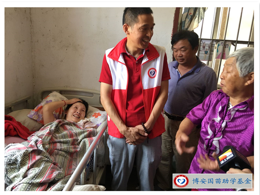 馮大姐,今年45歲,常年癱瘓?jiān)诖玻坷夏赣H照顧生活起居。熊理事長每逢春節(jié)、端午等重要的中國傳統(tǒng)節(jié)日,都會(huì)親自到家中去看望她。今天,當(dāng)她再次看到熊理事長來到家中,宛如見到“老朋友”,激動(dòng)的拉住他的手,滿臉露出感激的笑容。