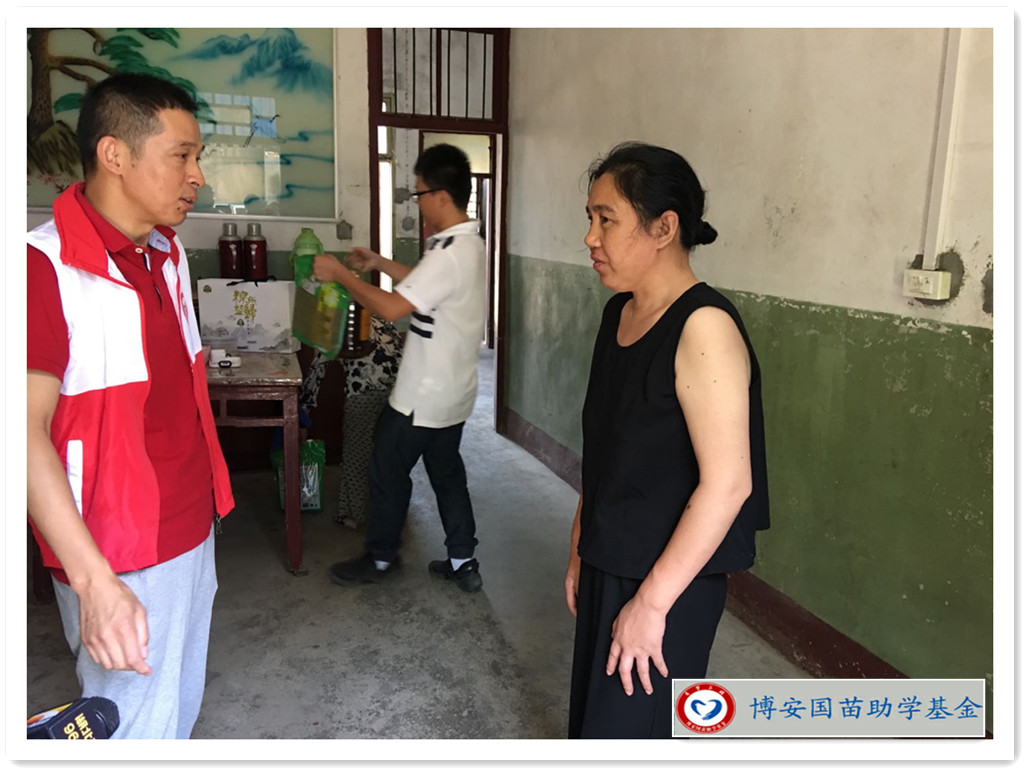 熊理事長與博安國苗助學(xué)基金的工作人員一起,挨家挨戶送溫暖