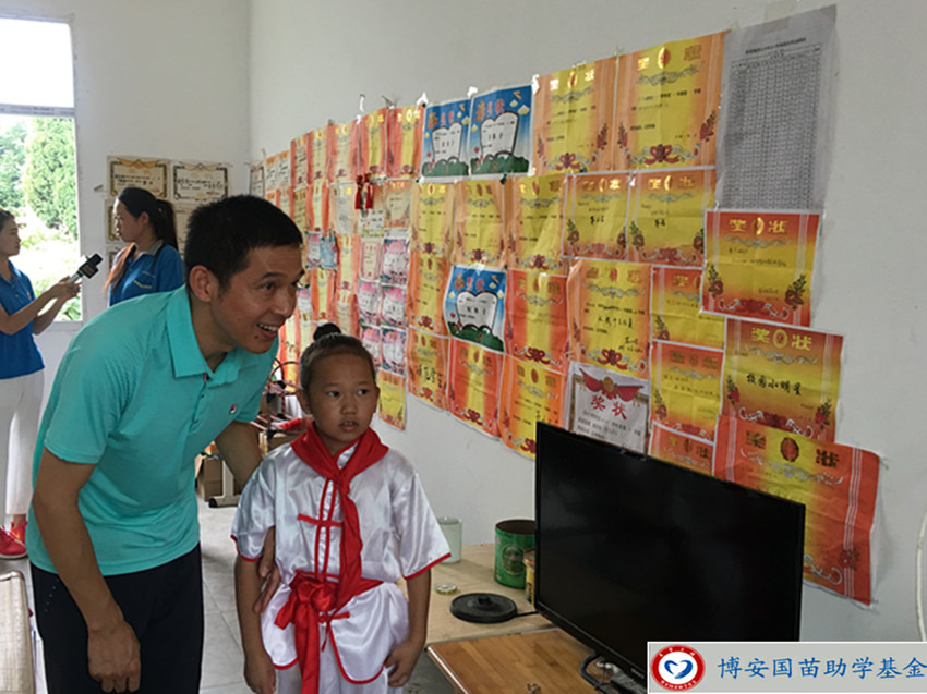 貧困學生黃芷嫻家庭,兩年前因一場意外車禍奪去了爸爸的生命。這位堅強的單親媽媽目前獨自一人僅依靠代課老師微薄的工資帶著兩個聽話的女兒,房間墻壁上貼滿了姐妹倆的獎狀。這位堅強媽媽看到這么多愛心企業(yè)和愛心人士關心她們母女的生活,忍不住流下了幸福而感激的淚水。熊理事長鼓勵孩子好好學習,幫助媽媽干一些力所能力的事情,同時表示,基金會將給予黃芷嫻每年1200元的助學金,并持續(xù)關注她們家庭。