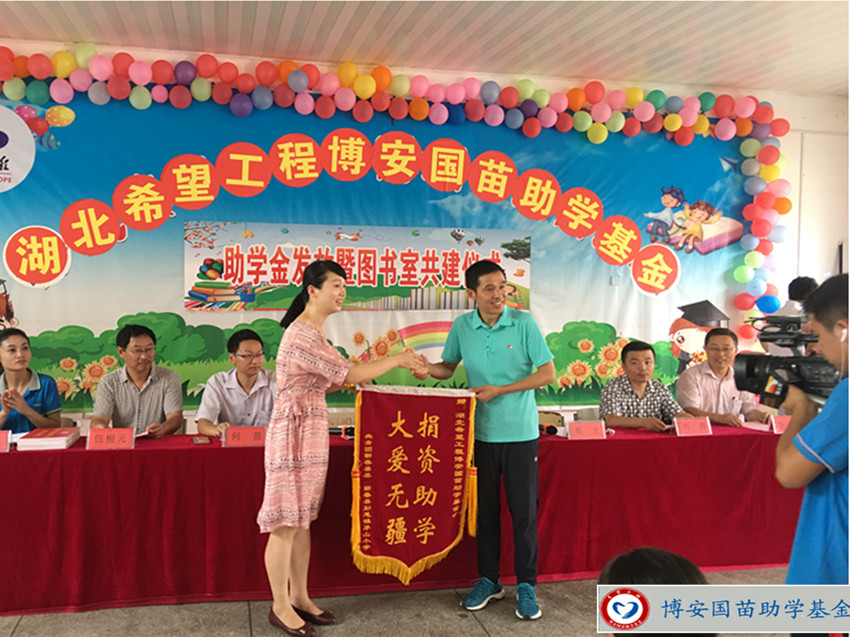 共青團蘄春縣委書記徐蕾向博安國苗助學基金回贈錦旗