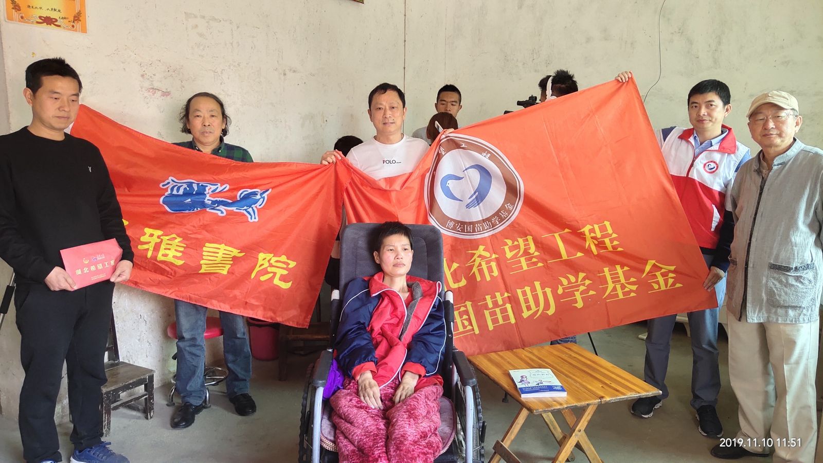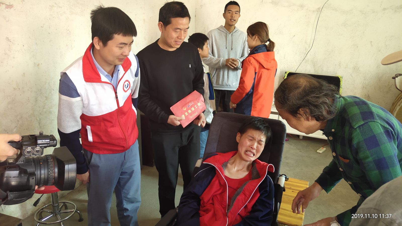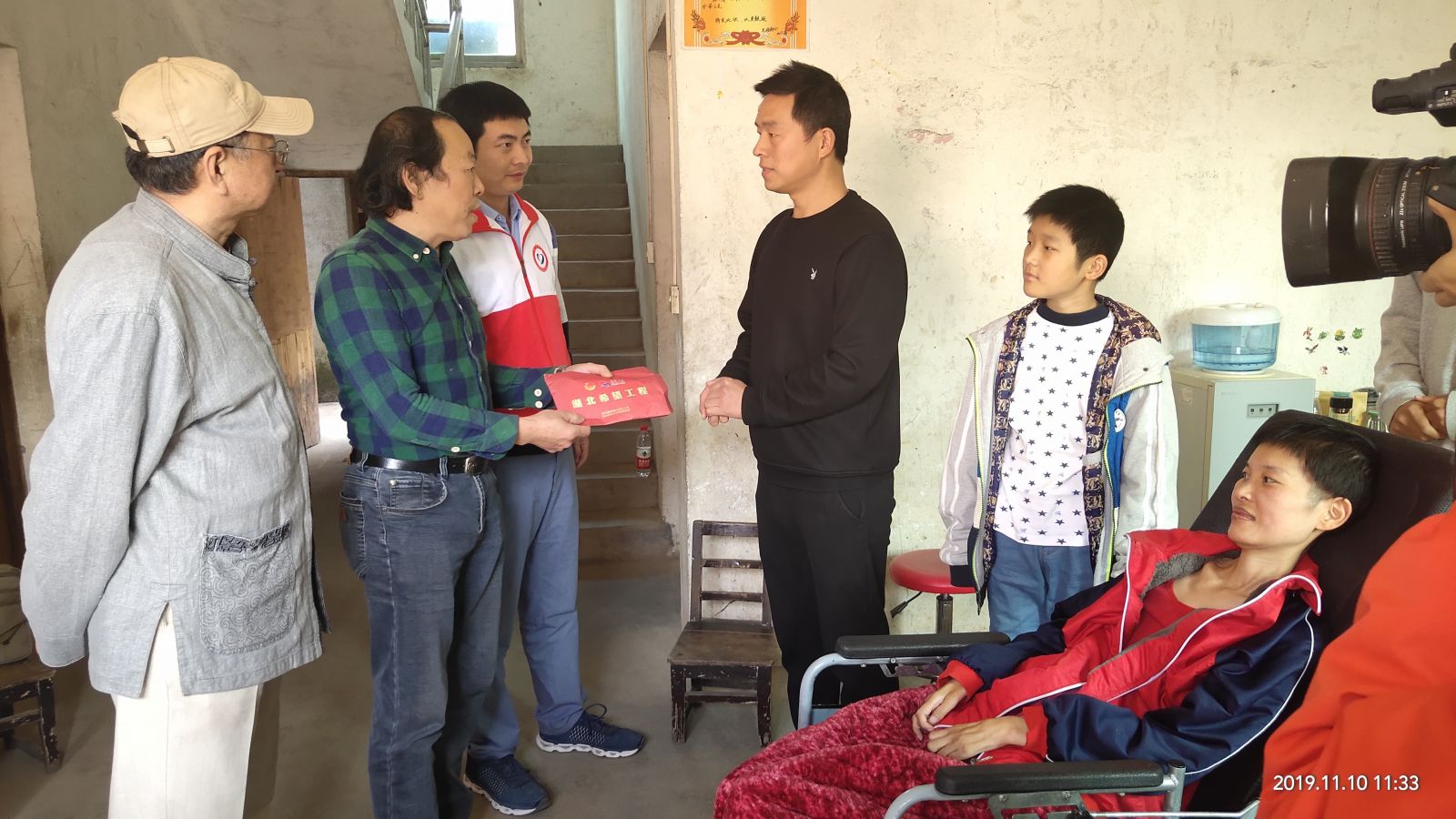 志愿者們受基金會(huì)理事長熊善清、冠雅書院院長李文藝囑托,走進(jìn)毛俊熊家,送上一萬元愛心款。毛俊熊的愛人徐麗2014年患上漸凍癥,失去勞動(dòng)能力,兩個(gè)兒子目前分別在上大學(xué)、讀小學(xué)。毛俊熊不離不棄,細(xì)心照料妻子起居,同時(shí)侍奉七旬母親,一家人生活拮據(jù)。