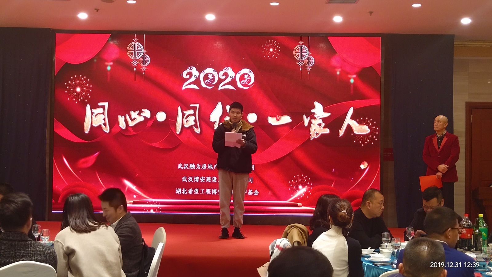 同心·同行·一家人 金豬搖尾辭舊歲,玉鼠探頭迎新年。2019年12月31日中午12時,武漢博安建設(shè)工程有限公司、武漢融為房地產(chǎn)置業(yè)有限公司、湖北希望工程·博安國苗助學(xué)基金聯(lián)合舉辦的《2020同心·同行·一家人迎新年會》在武漢金貴源洲際酒店隆重舉行! 武漢博安建設(shè)工程有限公司董事長熊善清、總經(jīng)理李成國,武漢融為公司的領(lǐng)導(dǎo)和全體員工,以及現(xiàn)場的特邀嘉賓歡聚一堂,共渡聯(lián)歡!年會還榮幸邀請到張群主任作嘉賓主持。 ![]() 首先,武漢博安建設(shè)工程有限公司李成國總經(jīng)理上臺致新年賀詞!李總回顧了博安公司2019年的心路歷程,肯定了這一年所取得的輝煌成績,博安人一步一個腳印,一年一個新高度。展望2020,博安人滿懷信心和期待,團(tuán)結(jié)進(jìn)取、無私奉獻(xiàn)、追求卓越、打造品牌! ![]() 博安的發(fā)展,離不開每一位博安人的辛勤工作和共同努力,每一份付出,必將收獲每一份回報。李成國總經(jīng)理對2019年度博安項目部各位優(yōu)秀員工進(jìn)行了表彰和頒獎。希望他們在新的一年,再接再勵,緊跟公司步伐,作為團(tuán)隊表率,再創(chuàng)輝煌佳績! ![]() 晚會中還有個特別環(huán)節(jié)。武漢博安建設(shè)工程有限公司董事長、國苗基金理事長熊善清先生發(fā)起的博安國苗助學(xué)基金資助的貧困大學(xué)生吳前望也來到了現(xiàn)場。2019年8月,博安國苗助學(xué)基金再次聯(lián)合央視七套、壟上頻道共同舉辦的“‘托起希望 圓夢壟上’博安國苗助學(xué)行”貧困大學(xué)生資助活動,共資助了全省地區(qū)36名成績優(yōu)異、家庭貧困的應(yīng)屆大學(xué)生,每人給予5000-8000元的資助,吳前望是其中之一。他非常感激基金會的幫扶,非常感謝每位關(guān)心、幫助過他的愛心人士,他表示會勤奮刻苦學(xué)習(xí),以優(yōu)異的成績回饋社會! ![]() 為了幫扶更多的貧困學(xué)子和困難家庭,國苗助學(xué)基金始終秉持“匯聚愛,傳遞愛”的初心,年會上還精心設(shè)置了字畫拍賣環(huán)節(jié),拍賣所得的善款將全部捐獻(xiàn)到湖北青少年發(fā)展基金會,用于幫扶需要資助的貧困學(xué)子和困難家庭。年會拍賣環(huán)節(jié)現(xiàn)場氣氛熱烈,很多愛心人士和愛心單位紛紛慷慨解囊,為助學(xué)基金添磚加瓦。感恩所有關(guān)注和支持博安國苗助學(xué)基金的愛心單位、愛心組織和愛心人士! ![]() 愛心單位山河集團(tuán)江西公司 ![]() 愛心人士熊善發(fā) ![]() 愛心人士樂誠 ![]() 愛心人士武大總裁同學(xué)會陳鋼 ![]() 愛心人士趙啟兵 ![]() 最后,武漢博安建設(shè)工程有限公司董事長熊善清先生發(fā)表了熱情洋溢的講話?;仡?019,熊董總結(jié)了三個關(guān)鍵詞:共享、感謝和感恩。2019年我們堅持合作初心,夯實合作共贏的原則大步邁進(jìn),圓滿完成了今年的目標(biāo)任務(wù);感謝信任博安公司的所有業(yè)主們,是你們的支持與指導(dǎo),給予我們自信,特別感謝余家湖集團(tuán)的信任,才有了博安的成長與輝煌;感恩大家對博安國苗助學(xué)基金的幫助和支持,因為你們的肯定,給了我們前進(jìn)動力,因為你們的責(zé)任擔(dān)當(dāng),讓貧困孩子們有了自己的夢想! ![]() 美好的瞬間,定格永恒的記憶;奮斗的畫筆,揮灑夢想的華彩。我們即將揮別2019,迎來嶄新的2020,新的里程,新的目標(biāo),我們將求真務(wù)實,砥礪前行,不忘初心,不斷創(chuàng)新!讓我們只爭朝夕,不負(fù)韶華!